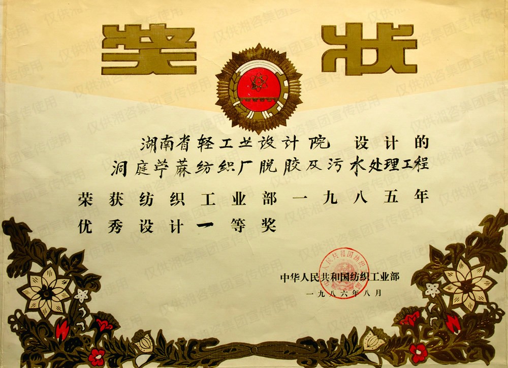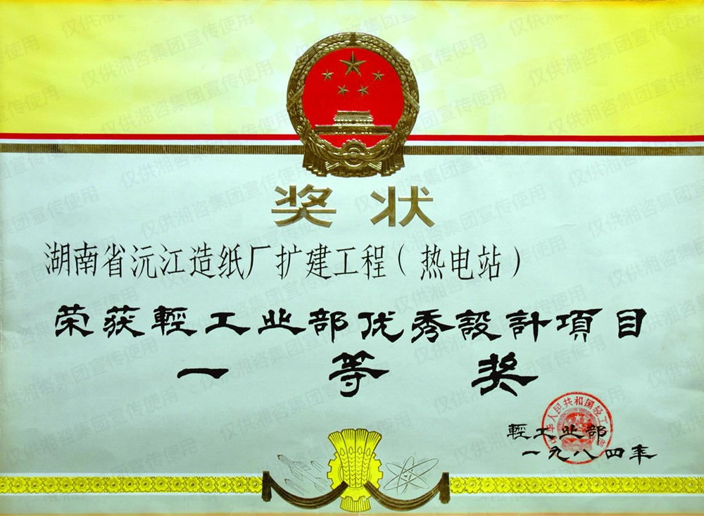 國(guó)家輕工部?jī)?yōu)秀設(shè)計(jì)項(xiàng)目一等獎(jiǎng)