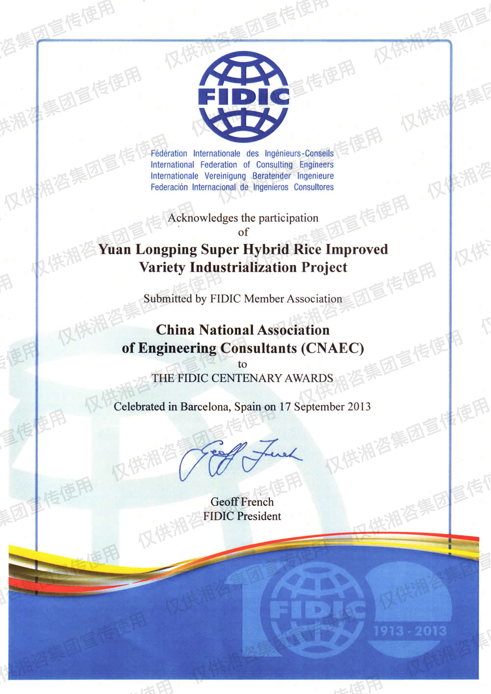 FIDIC百年工程項(xiàng)目紀(jì)念獎(jiǎng)