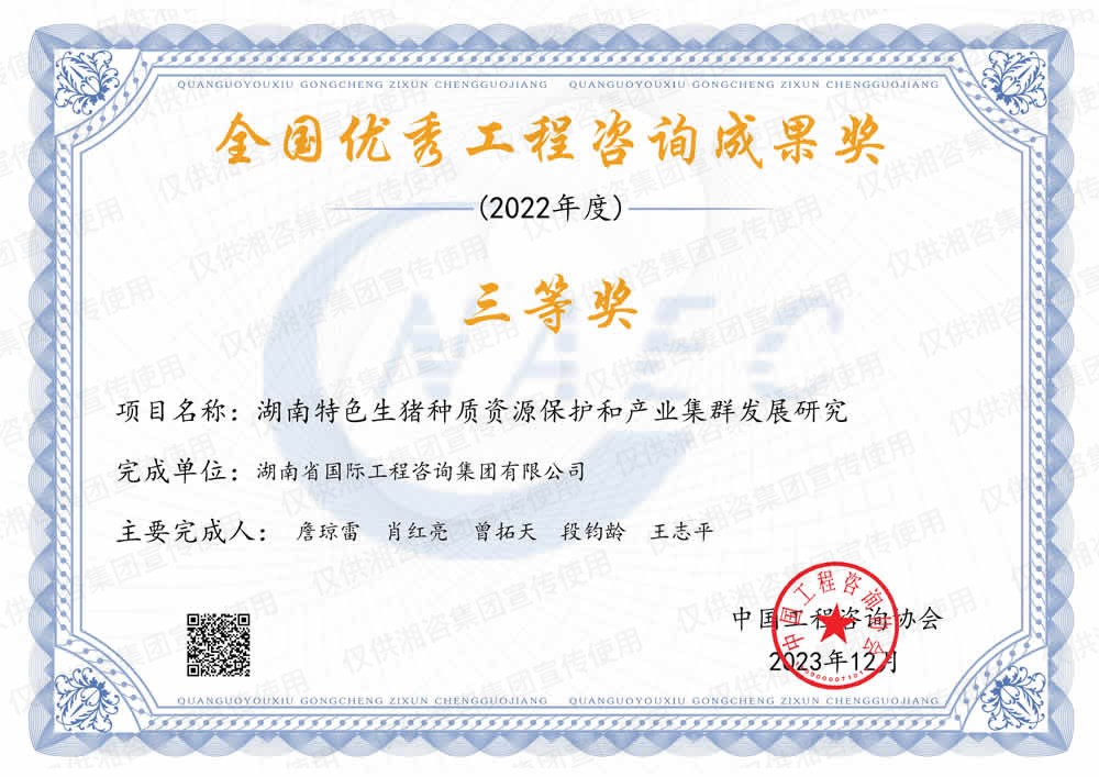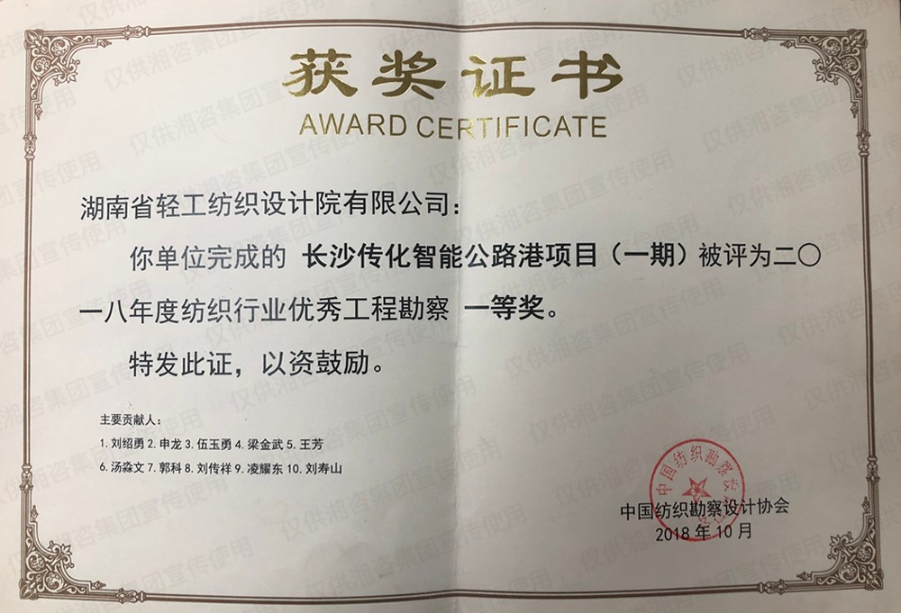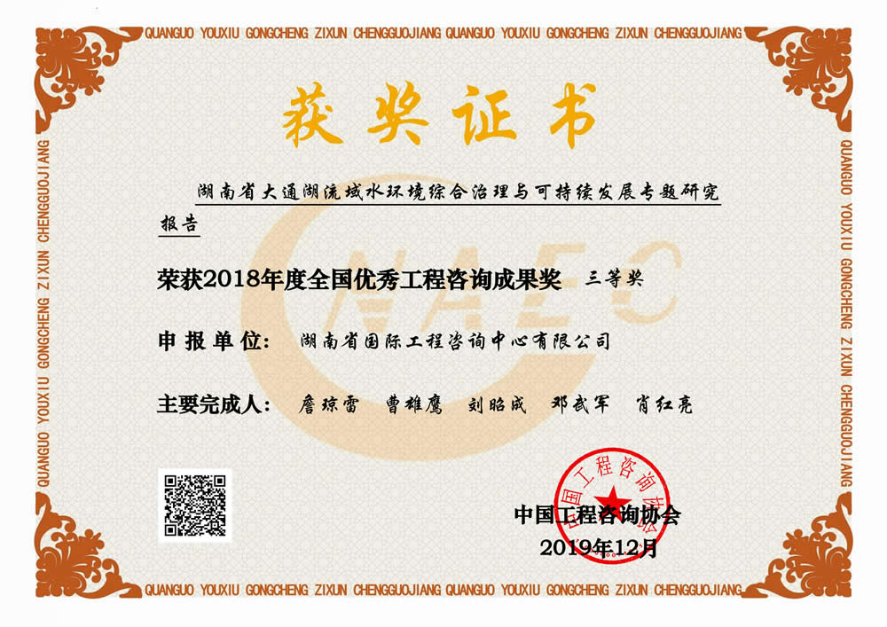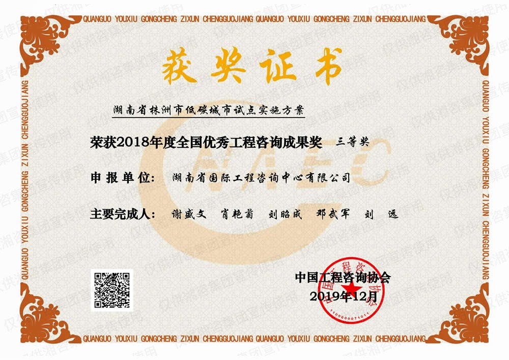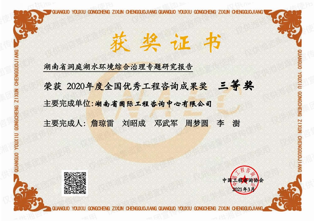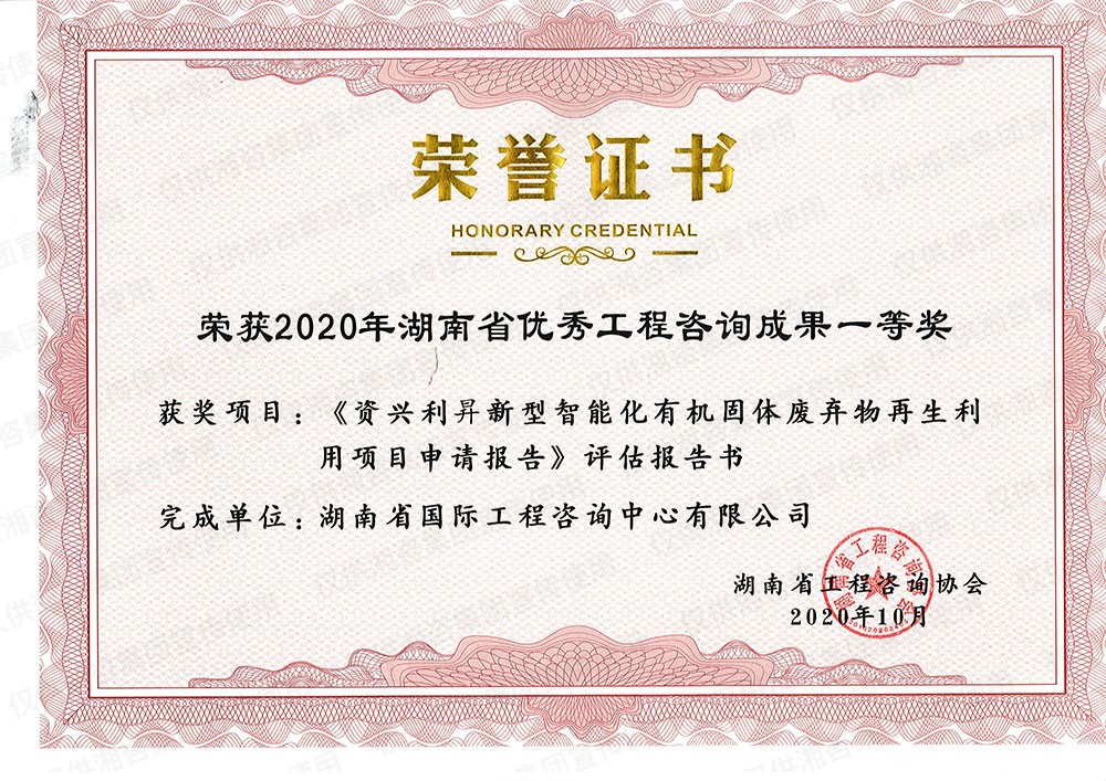 湖南省優(yōu)秀工程咨詢(xún)成果一等獎(jiǎng)