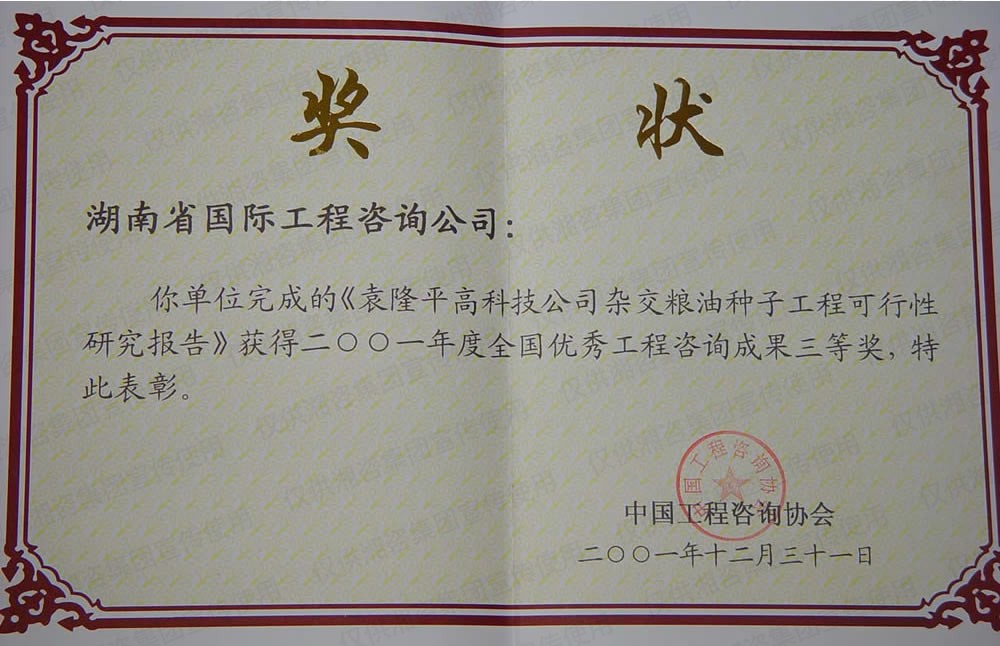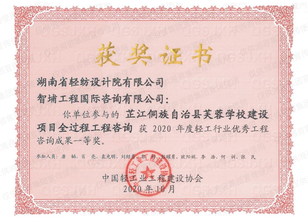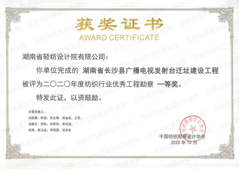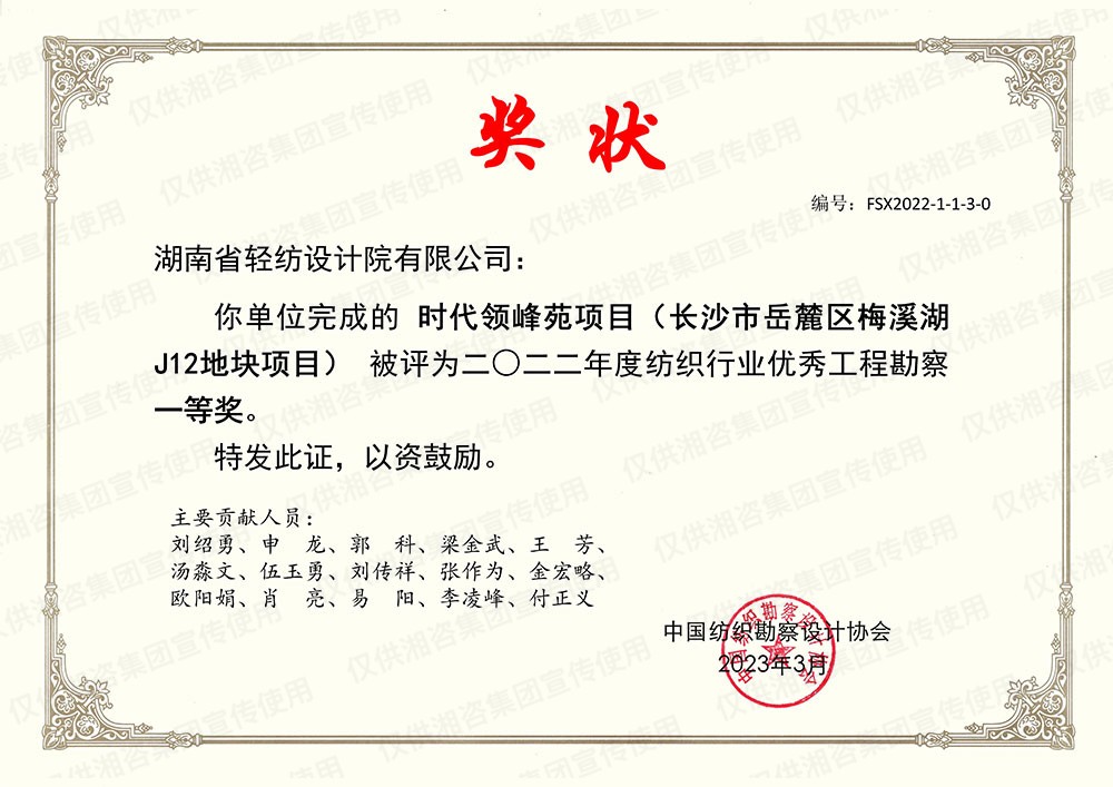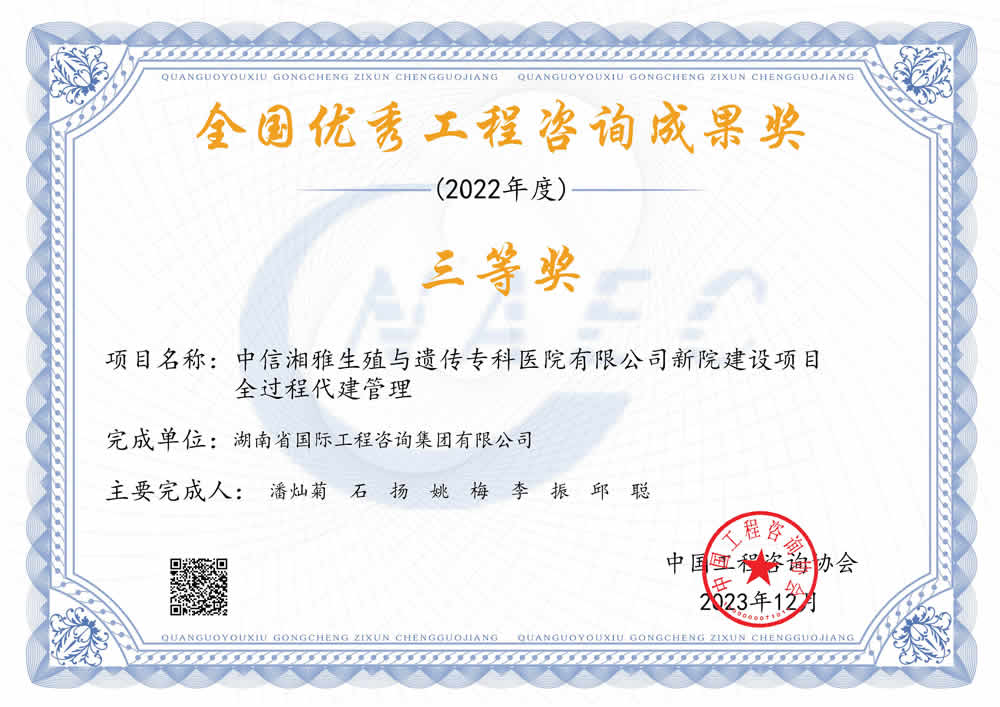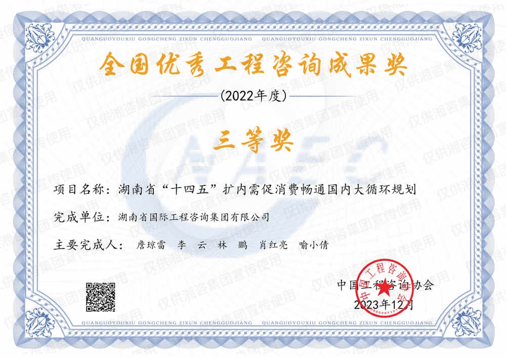 湖南省優(yōu)秀工程咨詢(xún)成果一等獎(jiǎng)