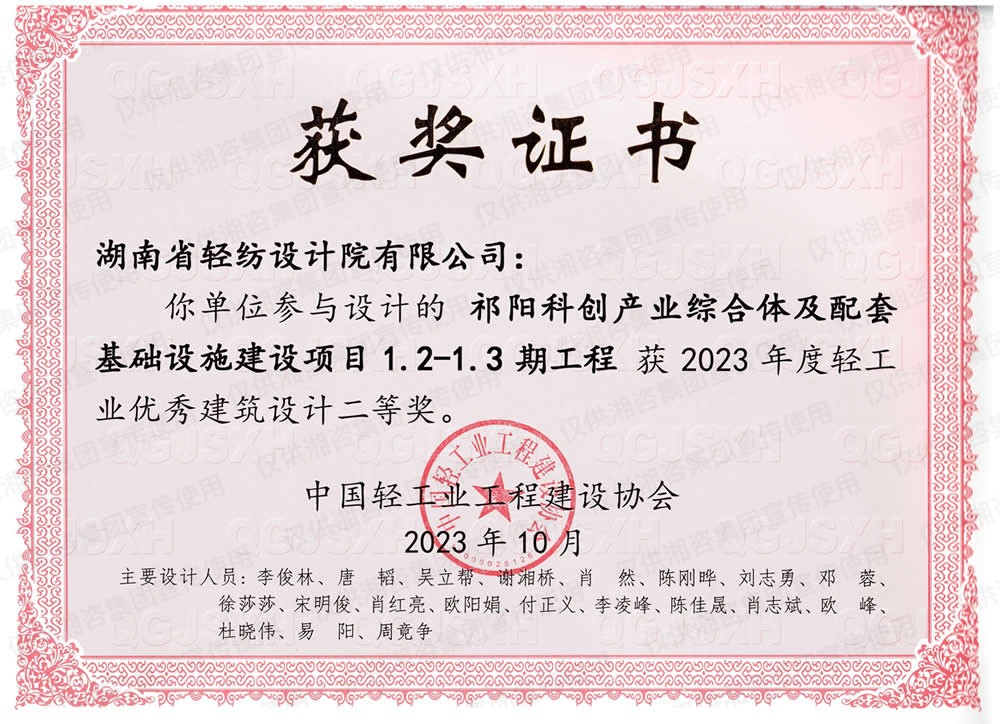 中國(guó)輕工業(yè)工程建設(shè)協(xié)會(huì)優(yōu)秀工程設(shè)計(jì)二等獎(jiǎng)