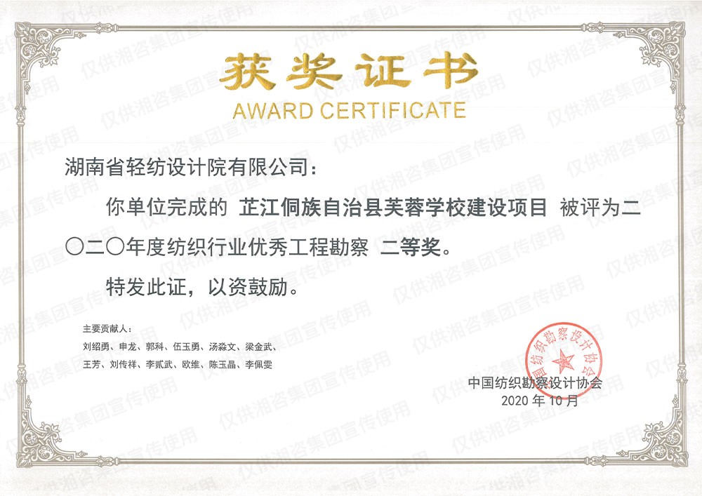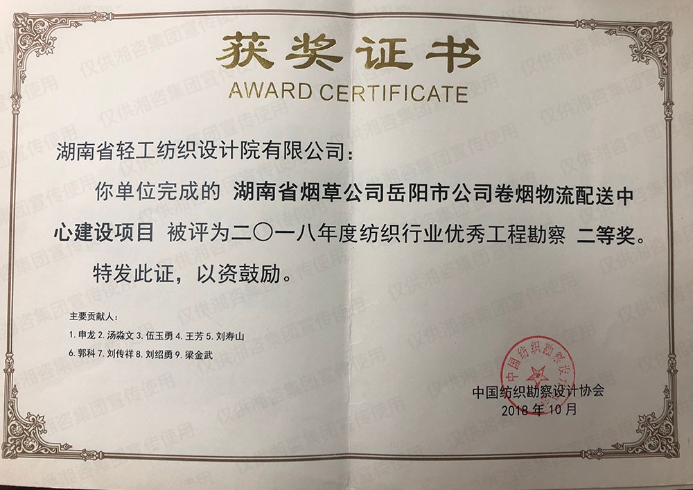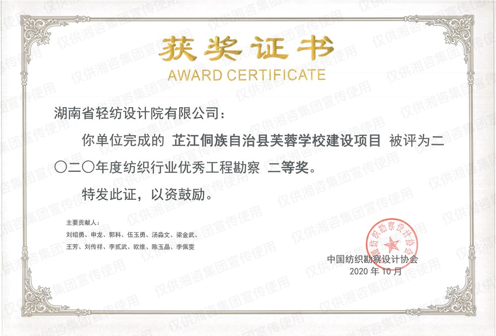 中國(guó)紡織勘察設(shè)計(jì)協(xié)會(huì)優(yōu)秀工程勘察二等獎(jiǎng)