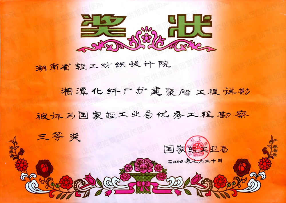 國(guó)家輕工業(yè)局優(yōu)秀勘察三等獎(jiǎng)