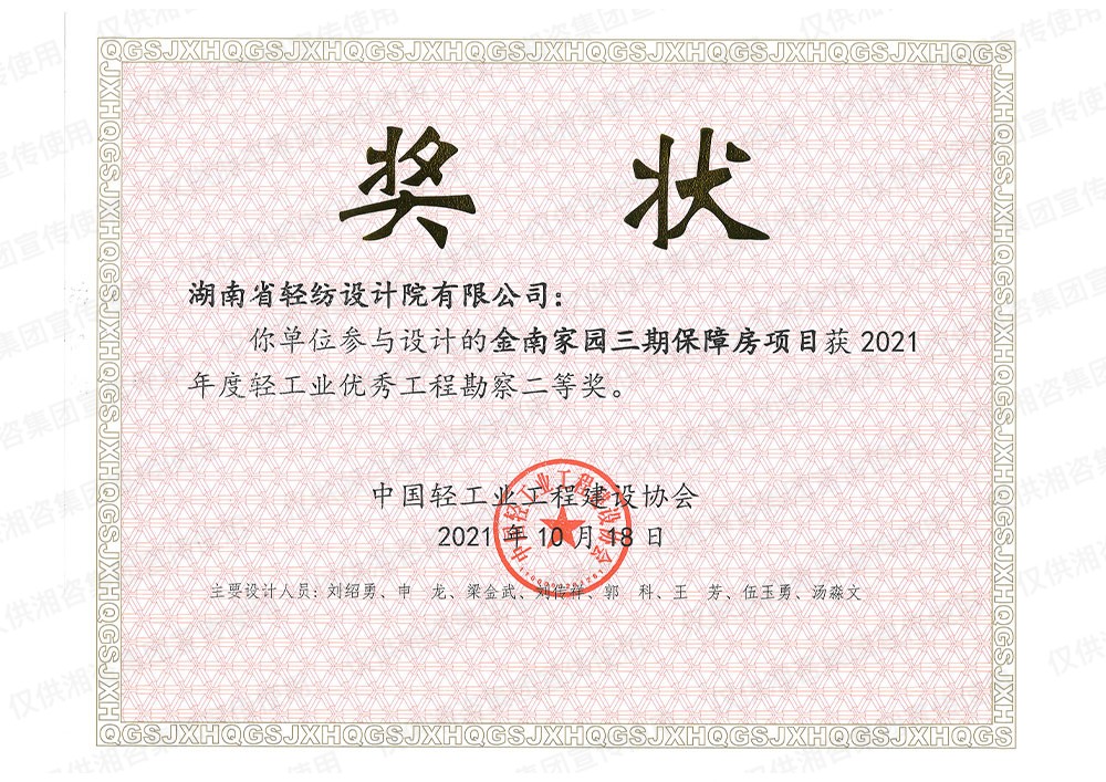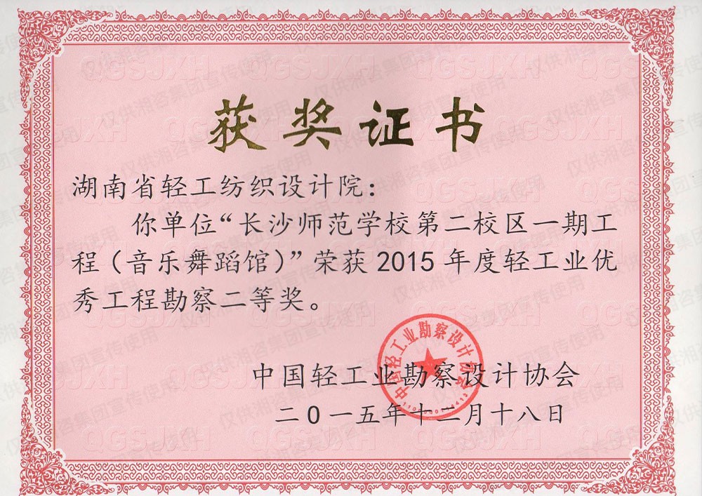 中國(guó)輕工業(yè)工程建設(shè)協(xié)會(huì)優(yōu)秀工程勘察二等獎(jiǎng)