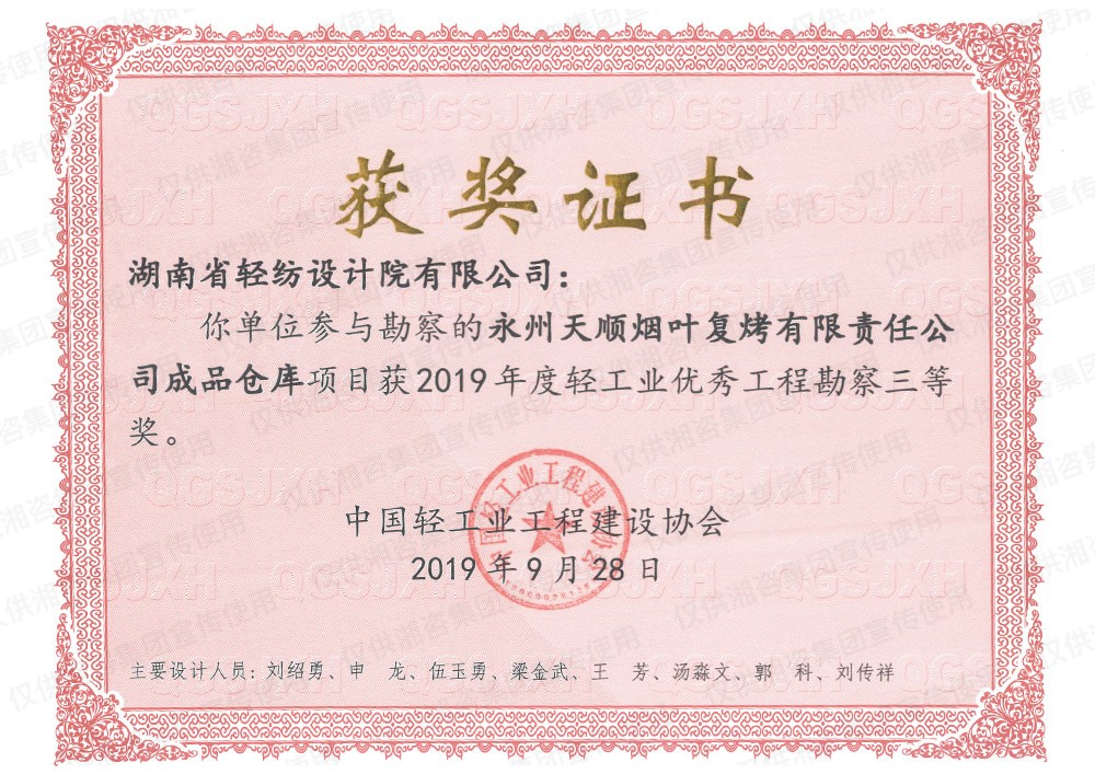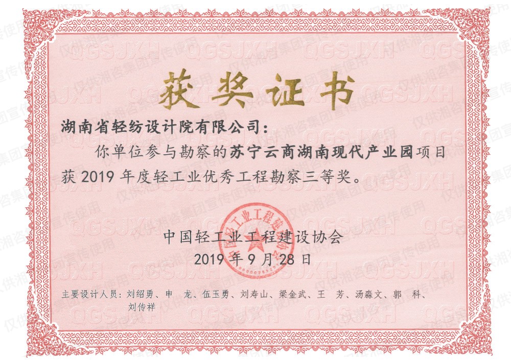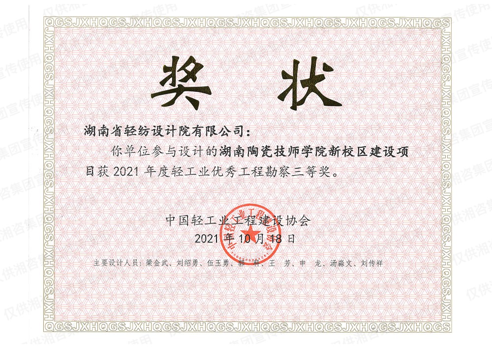 中國(guó)輕工業(yè)工程建設(shè)協(xié)會(huì)優(yōu)秀工程勘察三等獎(jiǎng)