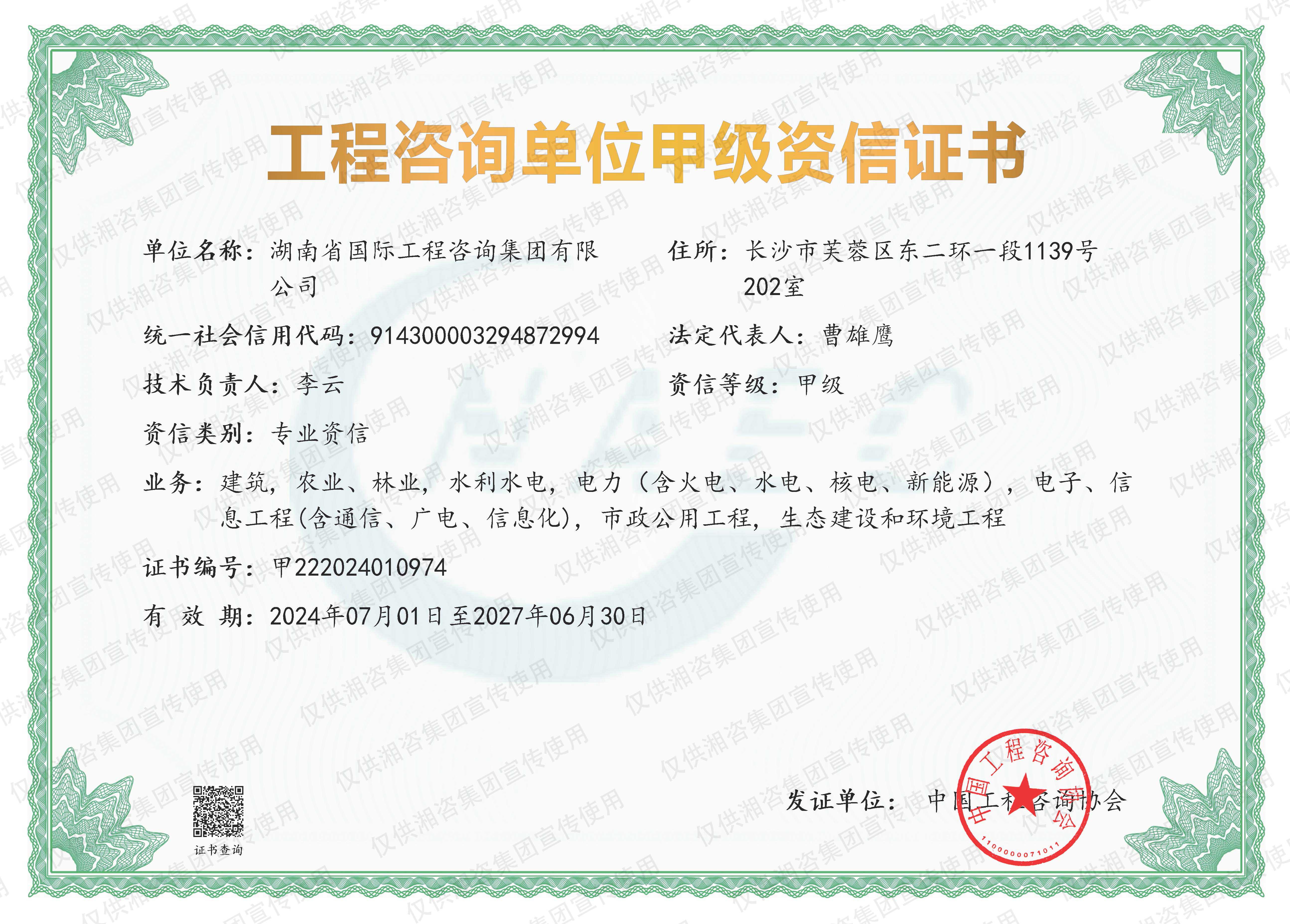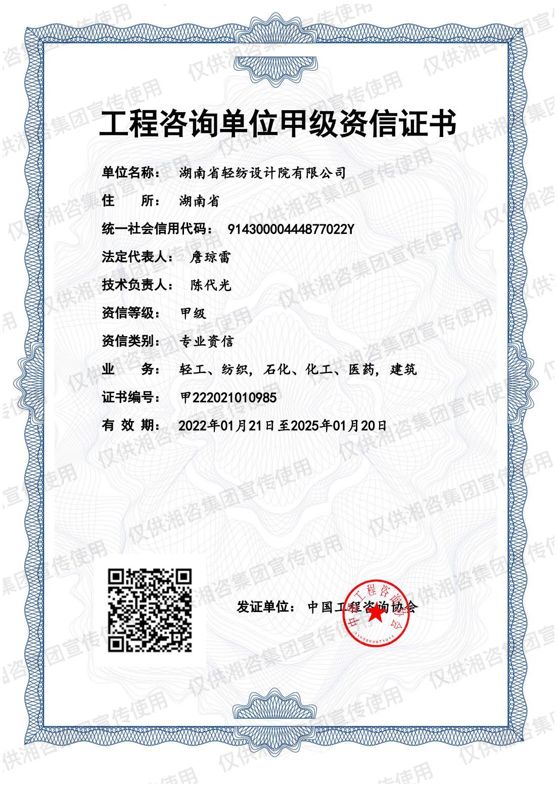 工程咨詢單位甲級(jí)資信證書-甲級(jí)