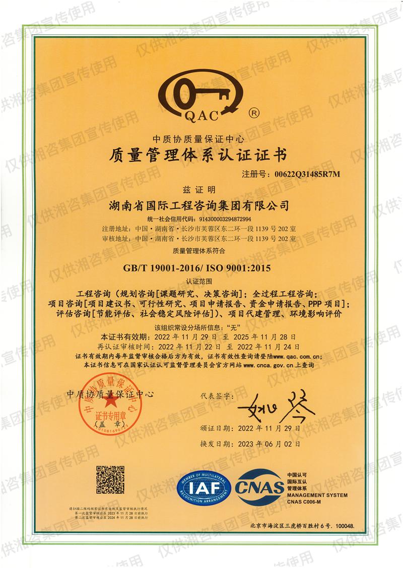 質(zhì)量管理體系認(rèn)證證書