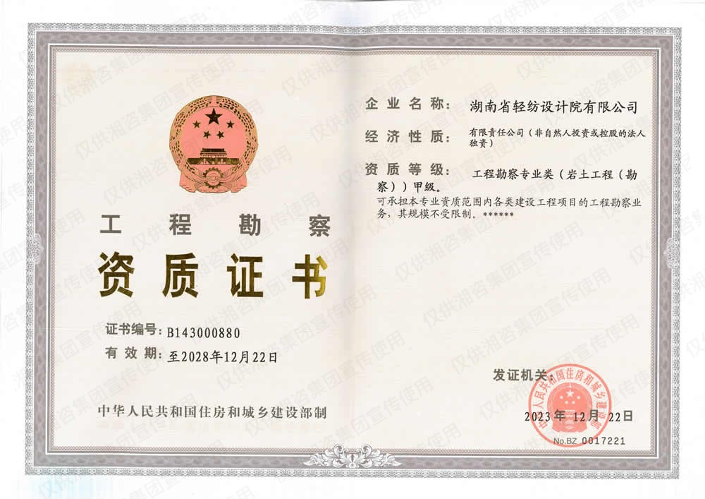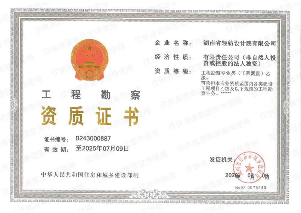 工程勘察資質(zhì)證書-乙級(jí)