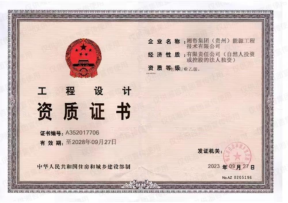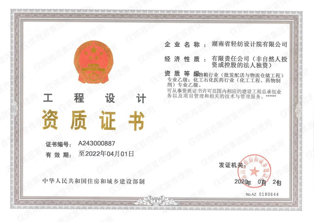 工程設(shè)計(jì)資質(zhì)證書-乙級(jí)