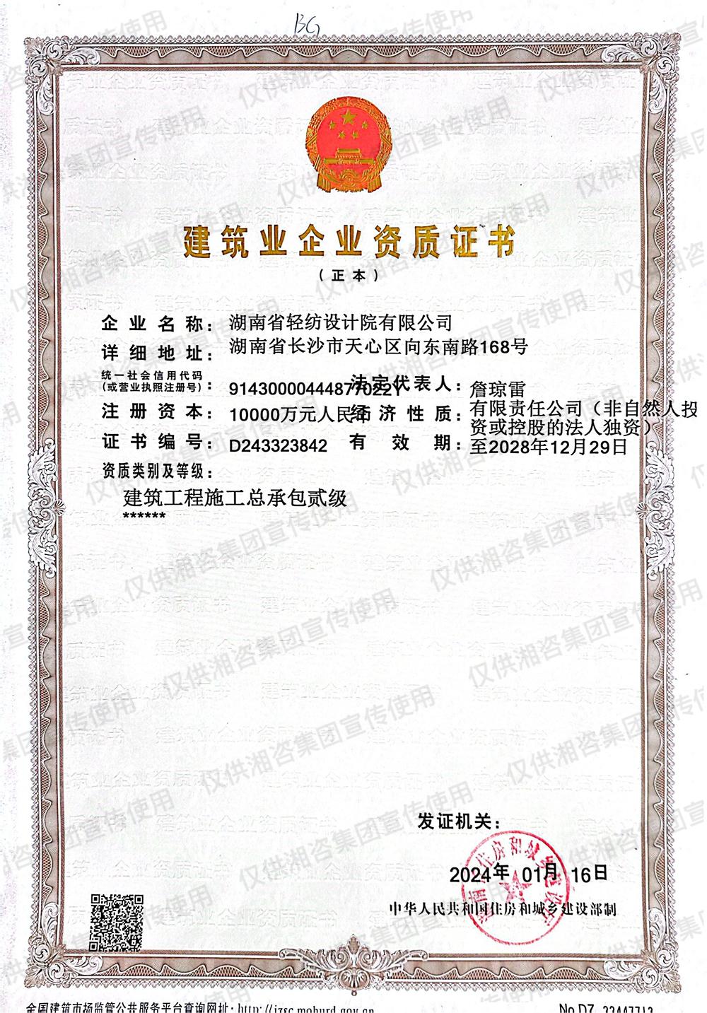 建筑業(yè)企業(yè)資質(zhì)證書-貳級(jí)