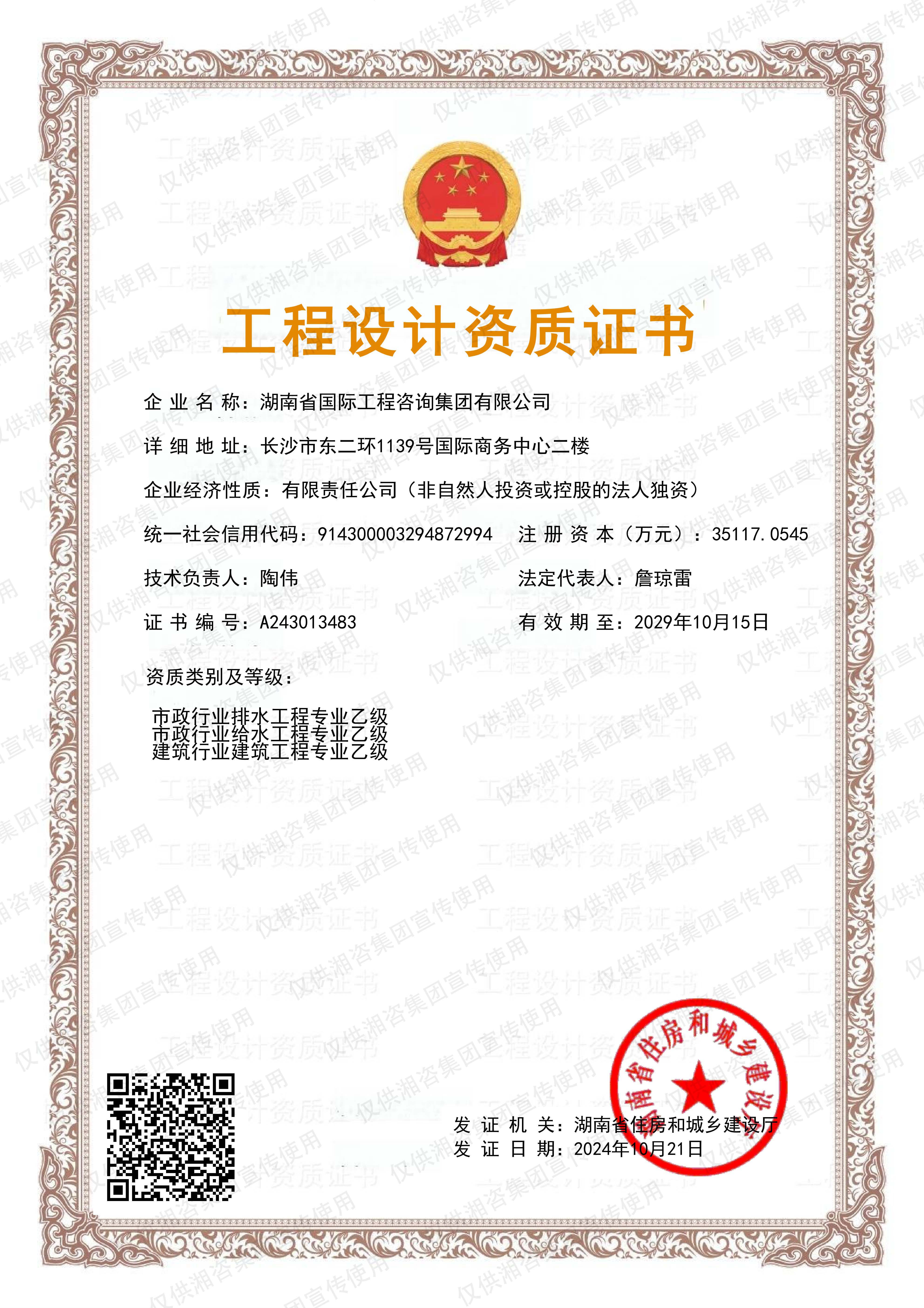 工程設(shè)計(jì)資質(zhì)證書-甲級(jí)