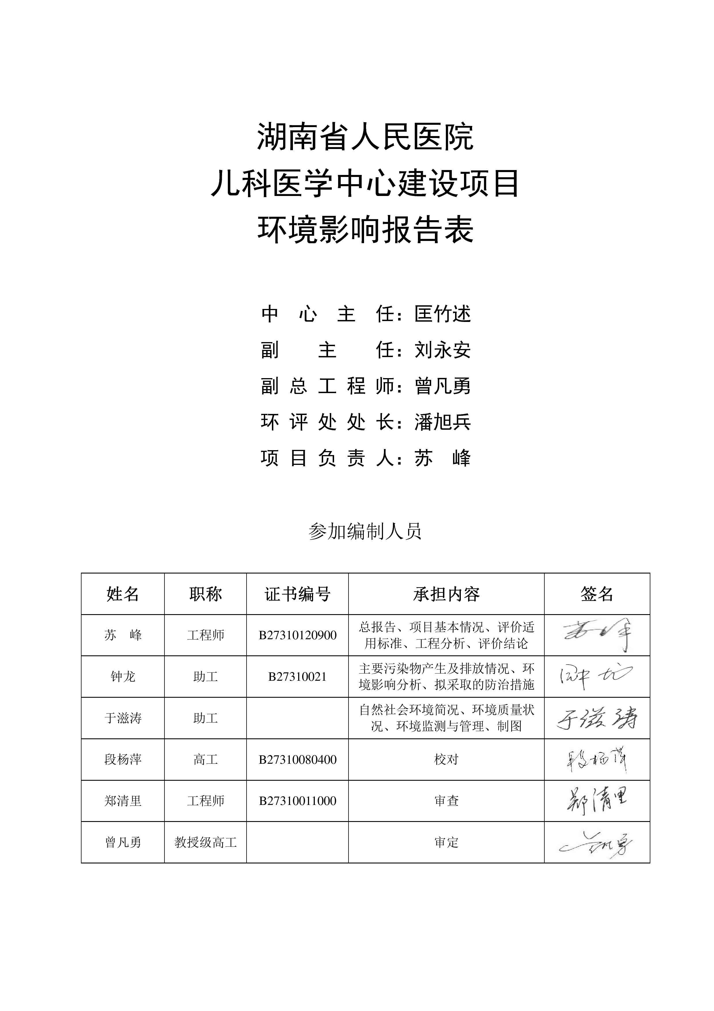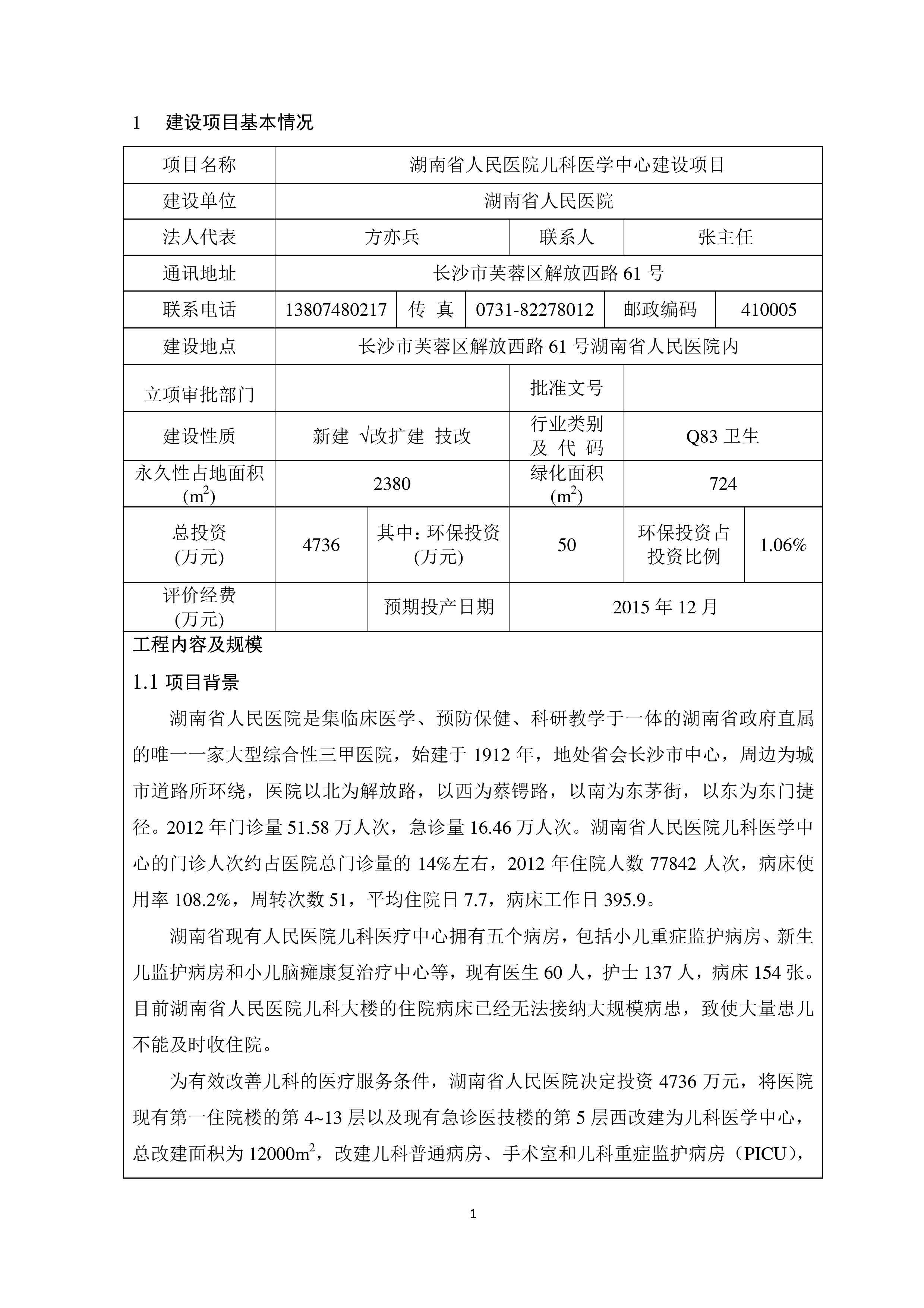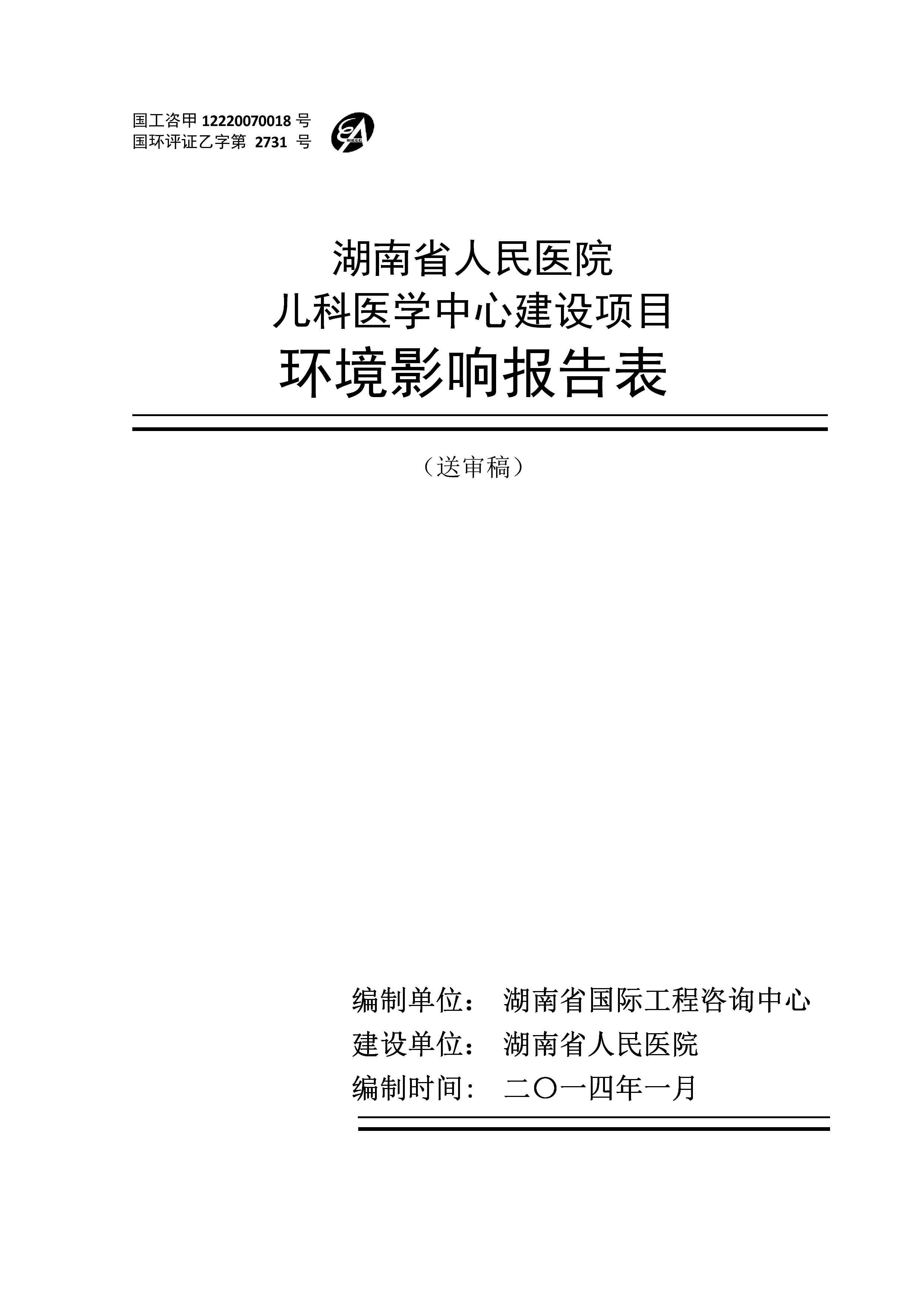 湖南省人民醫(yī)院兒科醫(yī)學(xué)中心建設(shè)項目環(huán)境影響報告表(送審稿)