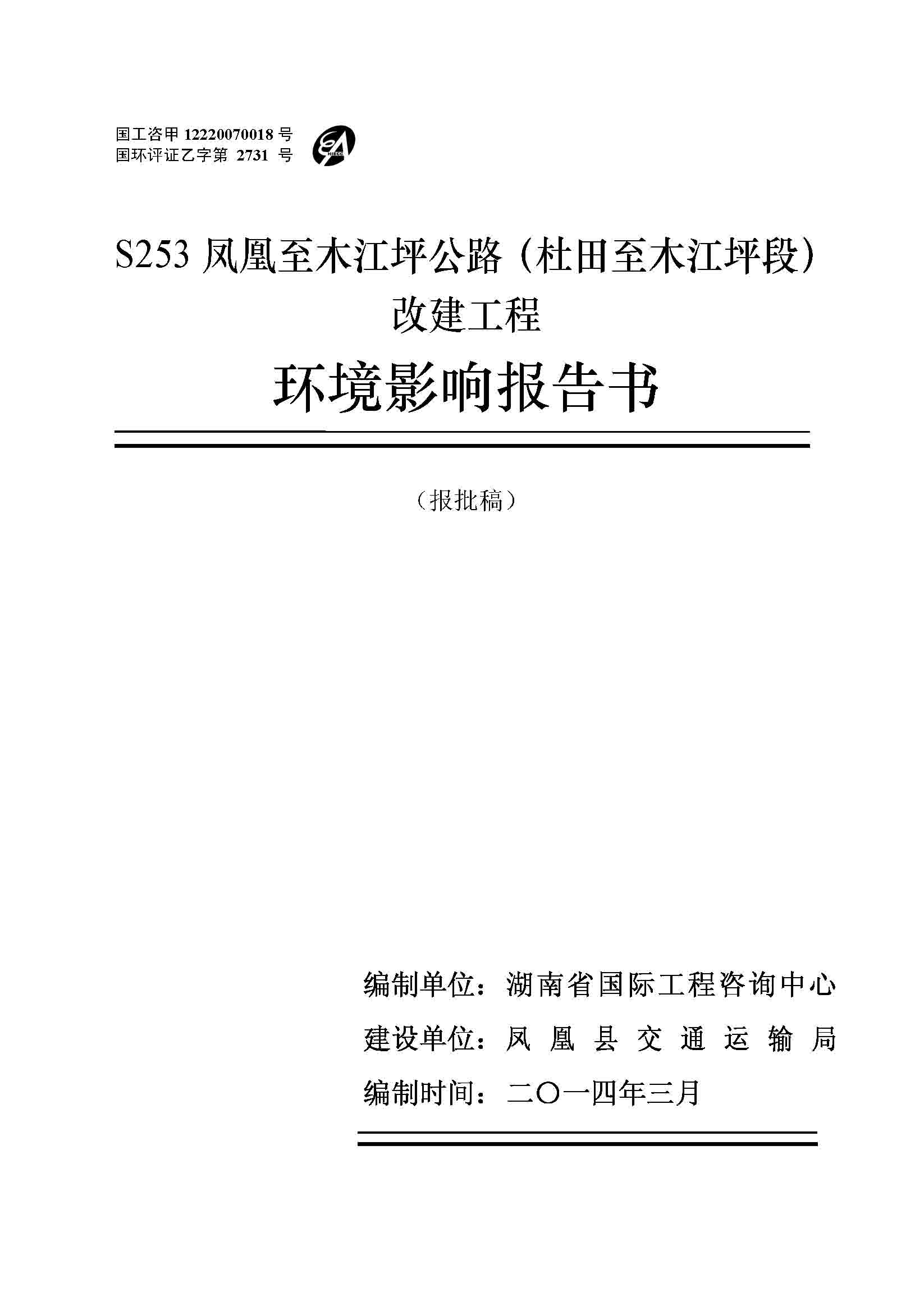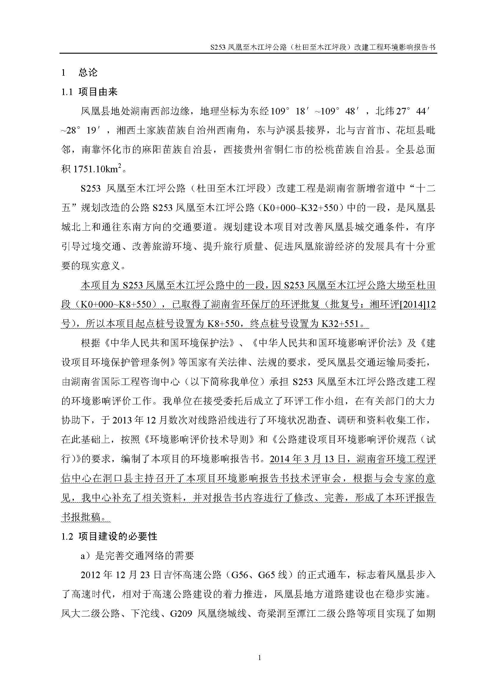 S253鳳凰至木江坪公路改建工程環(huán)境影響報告書