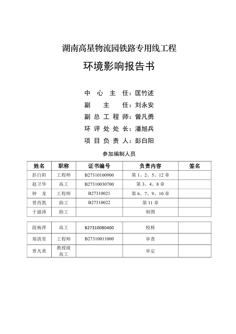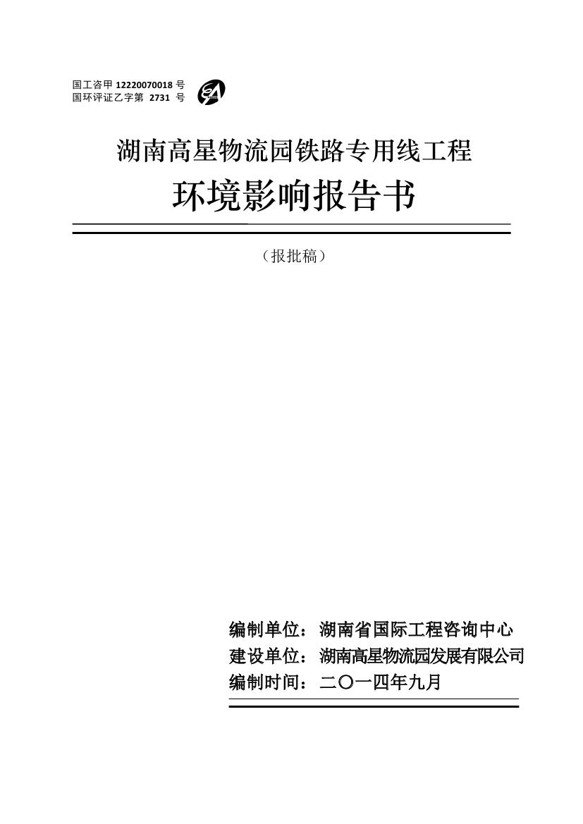 高星物流鐵路專用線環(huán)評(píng)報(bào)告(報(bào)批)