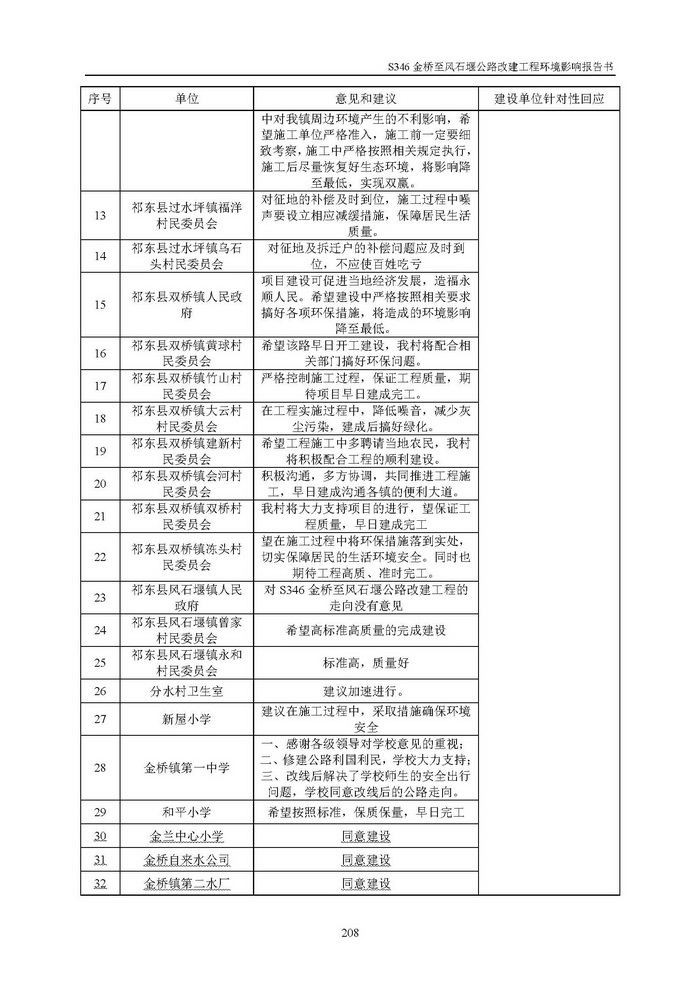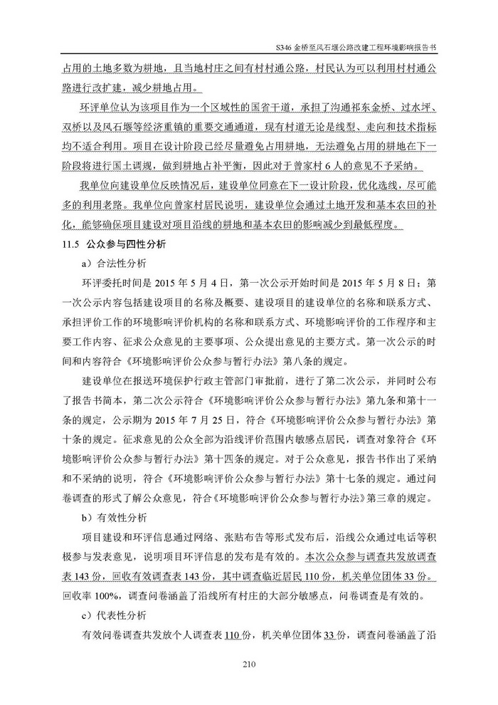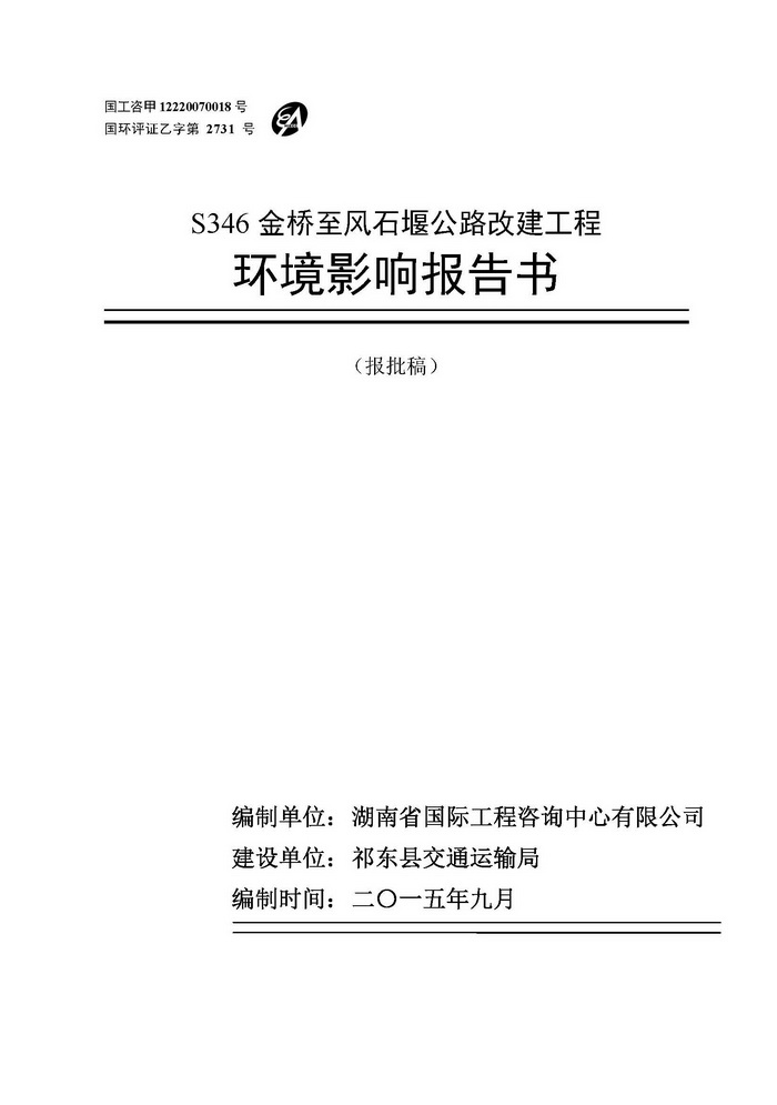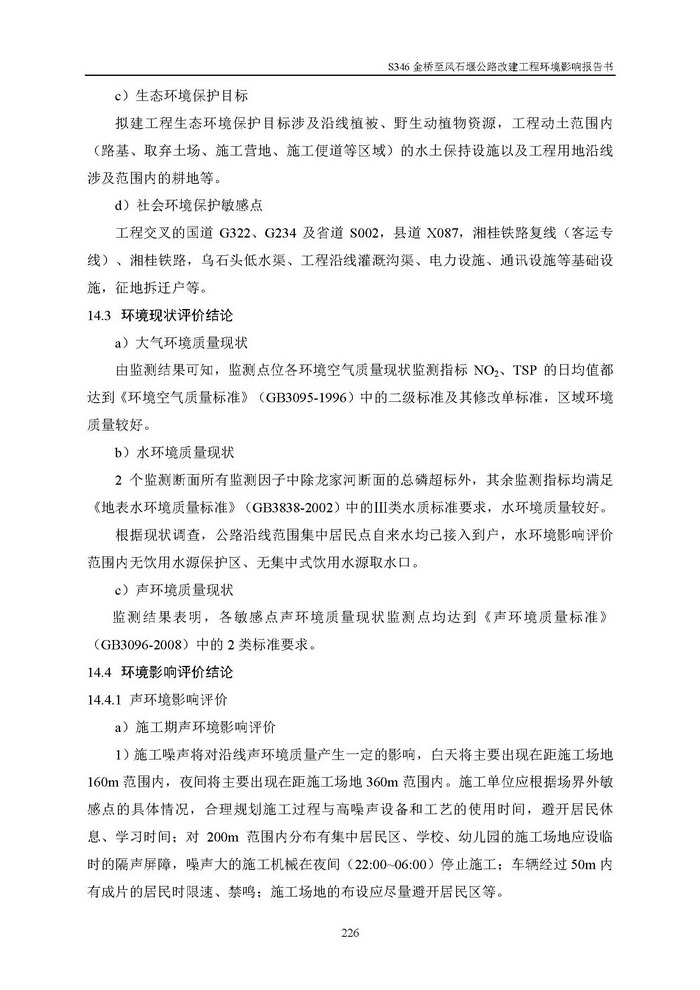 S346金橋至風(fēng)石堰公路改建工程環(huán)評(報批)