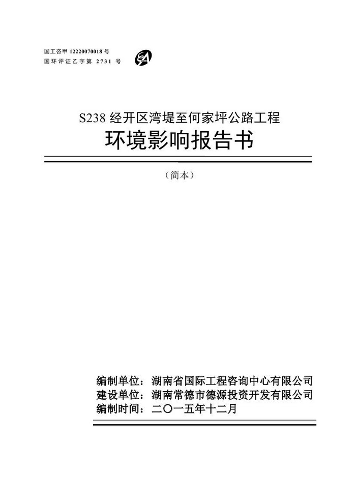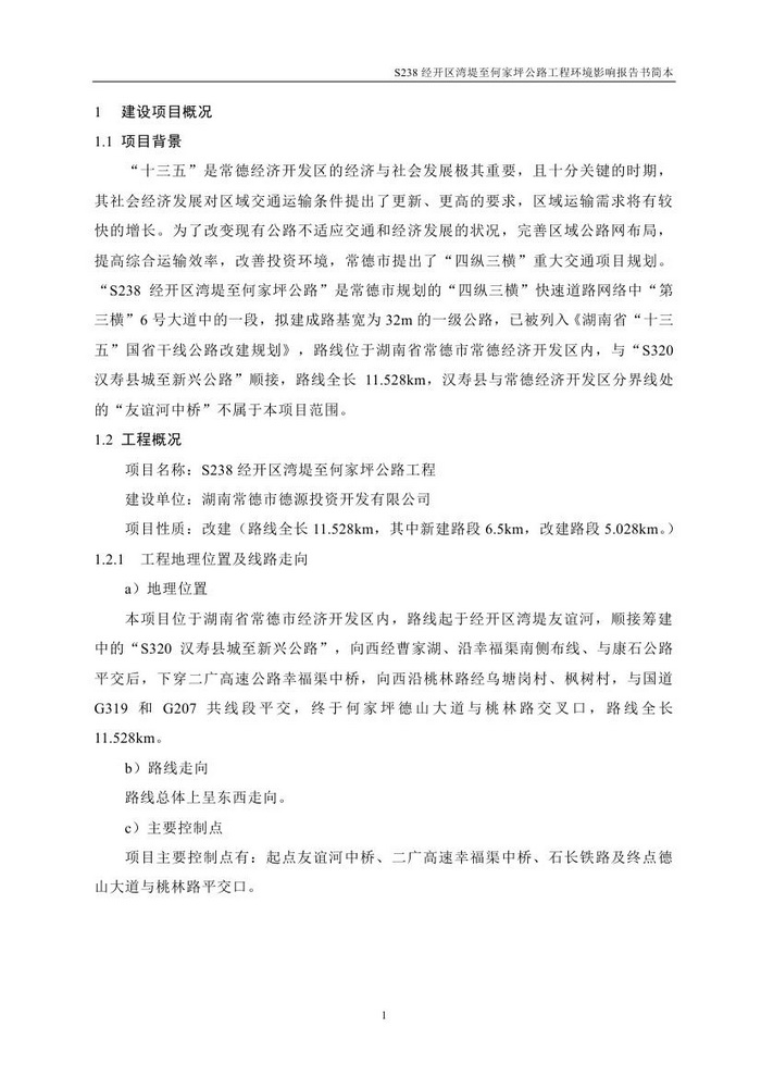 S238經(jīng)開(kāi)區(qū)灣堤至何家坪公路工程環(huán)境影響報(bào)告書(shū)簡(jiǎn)本