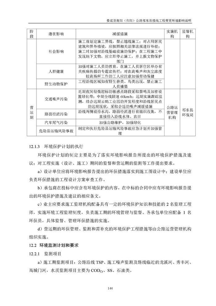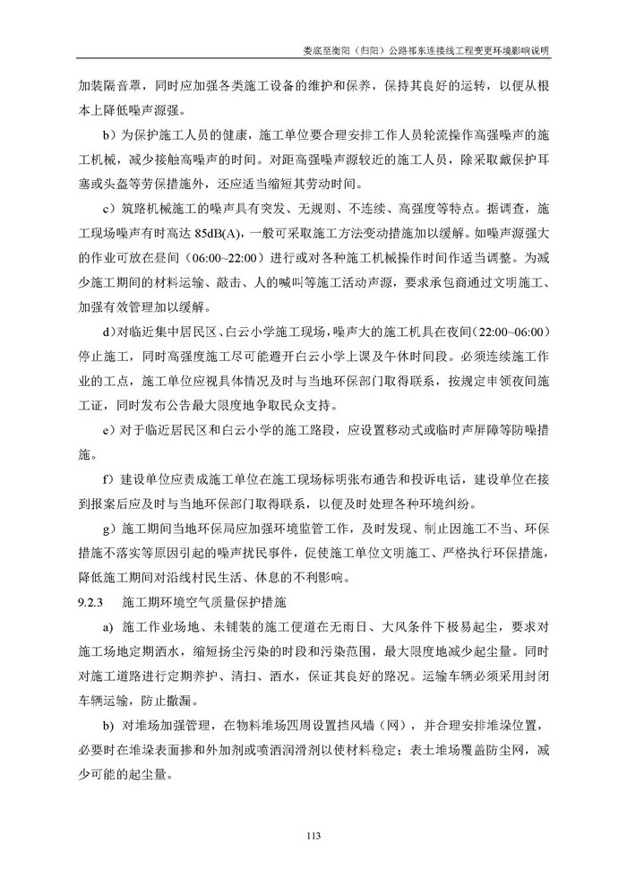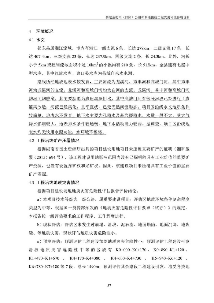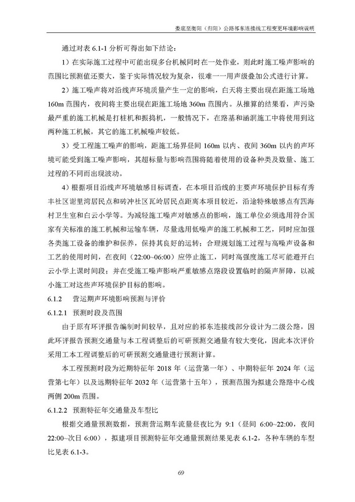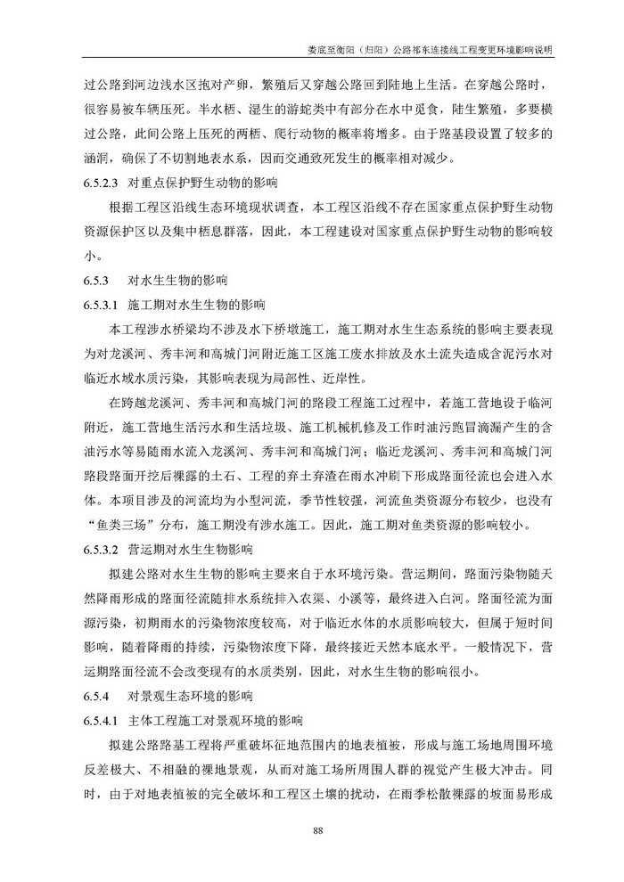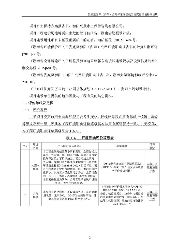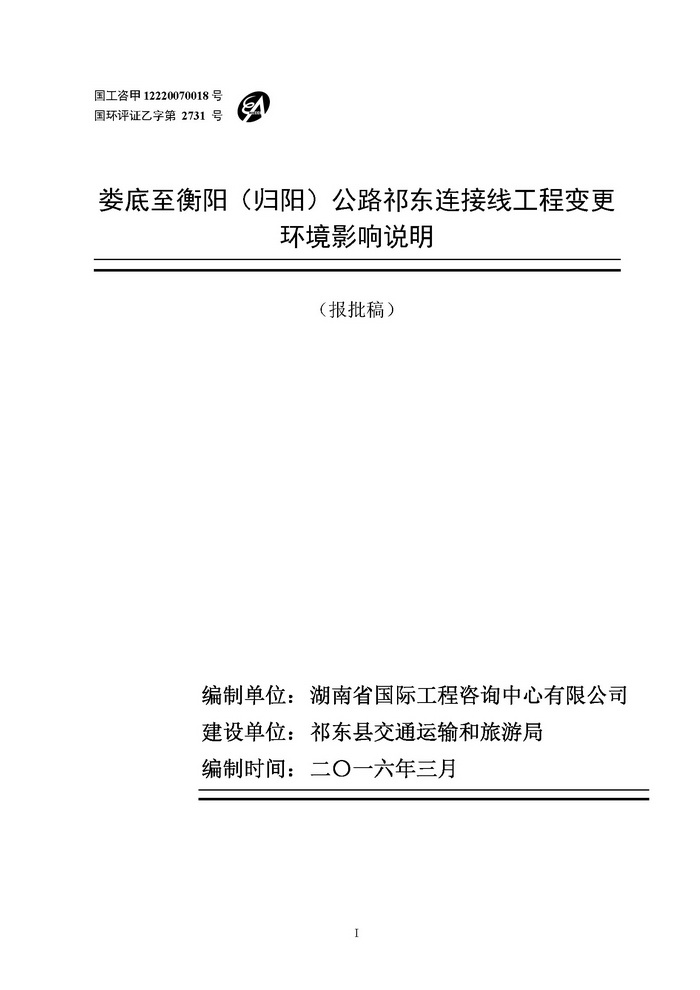 婁底至衡陽(歸陽)公路祁東連接線工程變更環(huán)境影響說明(報(bào)批)