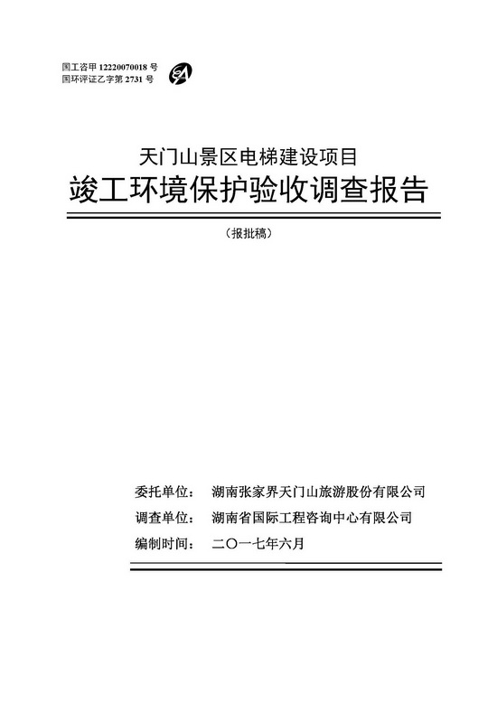 天門山景區(qū)電梯工程變更項目環(huán)境保護驗收調(diào)查報告(全本公示稿)