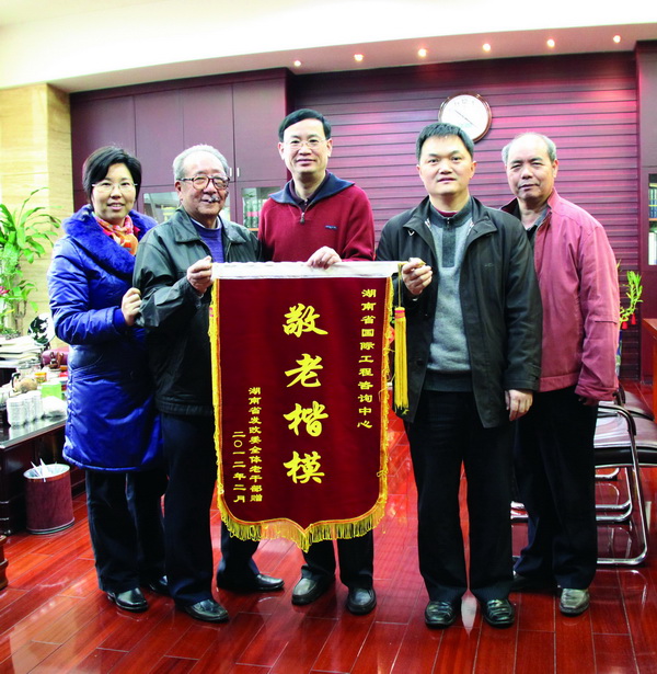 3月2日,省發(fā)改委機(jī)關(guān)離退休老干支部書記屈運(yùn)炳等老領(lǐng)導(dǎo),在省發(fā)改委離退處處長(zhǎng)何祖青、副處長(zhǎng)卜安春的陪同下來(lái)到中心,代表省發(fā)改委全體老干部將一面寫有“敬老楷?!钡腻\旗送到省發(fā)改委黨組成員、中心黨委書記、主任匡竹述手中,以感謝中心長(zhǎng)年來(lái)對(duì)老干部的關(guān)心和照顧。