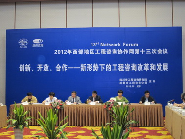 2012年10月10日,西部地區(qū)工程咨詢協(xié)作網(wǎng)第十三次會(huì)議在成都召開(kāi)。來(lái)自西部地區(qū)的13家成員單位,以及國(guó)家發(fā)改委國(guó)家投資項(xiàng)目評(píng)審中心、中國(guó)國(guó)際工程咨詢公司等23家綜合性工程咨詢單位的特邀代表參會(huì)。中心黨委委員、總工程師王沛皇參加了會(huì)議。