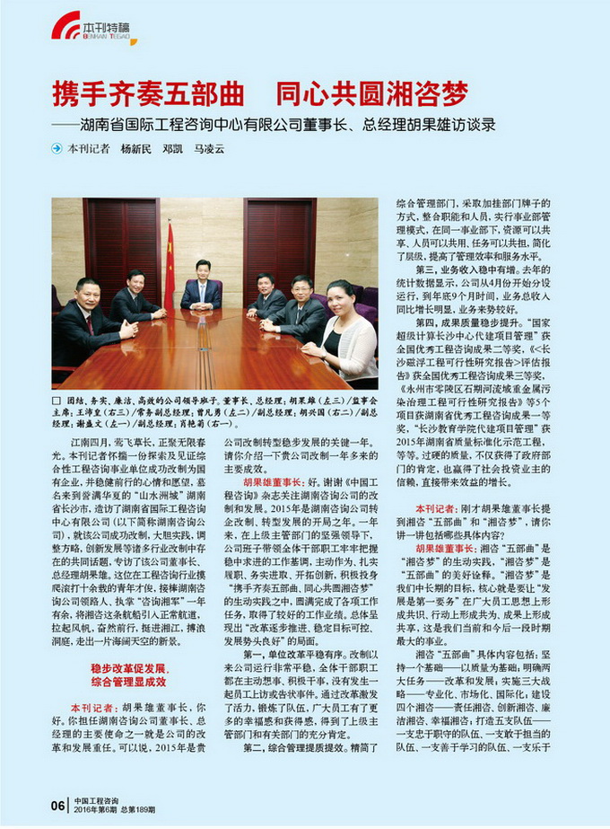 【轉載中國工程咨詢雜志】攜手齊奏五部曲 同心共圓湘咨夢