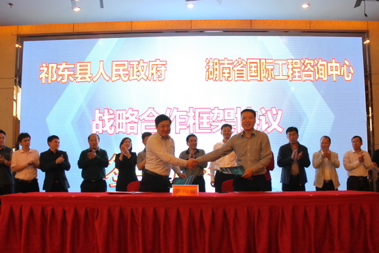 最后,公司黨委副書記、總經(jīng)理詹瓊雷,祁東縣委常委、常務副縣長雷建軍,分別代表湖南省國際工程咨詢中心有限公司和祁東縣人民政府在戰(zhàn)略合作框架協(xié)議書上簽字。