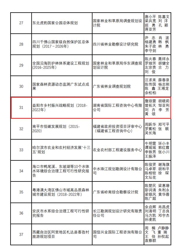 其中,農(nóng)業(yè)與湘西開發(fā)咨詢部完成的《益陽市鄉(xiāng)村振興戰(zhàn)略規(guī)劃(2018-2022年)》獲二等獎;生態(tài)規(guī)劃咨詢部完成的《湖南省大通湖流域水環(huán)境綜合治理與可持續(xù)發(fā)展專題研究報告》和《湖南省株洲市低碳城市試點實施方案》獲三等獎。