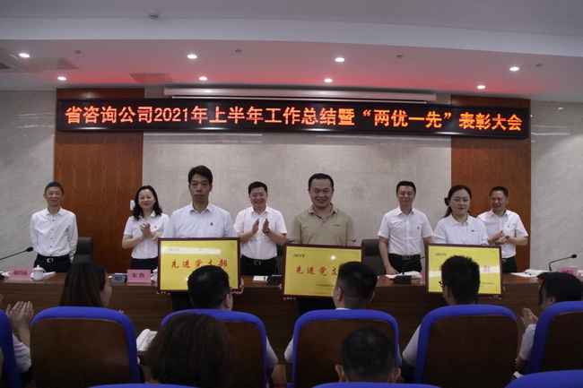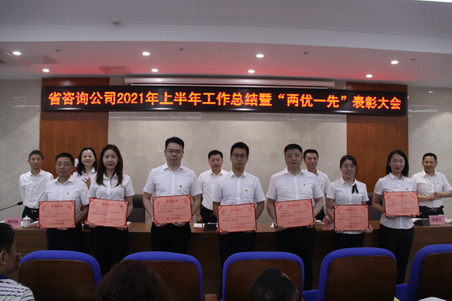 6月30日上午,省咨詢公司召開2021年上半年工作總結(jié)暨“兩優(yōu)一先”表彰大會(huì),公司領(lǐng)導(dǎo)班子成員、公司本部全體干部職工和分子公司代表參加會(huì)議。會(huì)議由公司黨委書記、董事長(zhǎng)詹瓊雷主持。