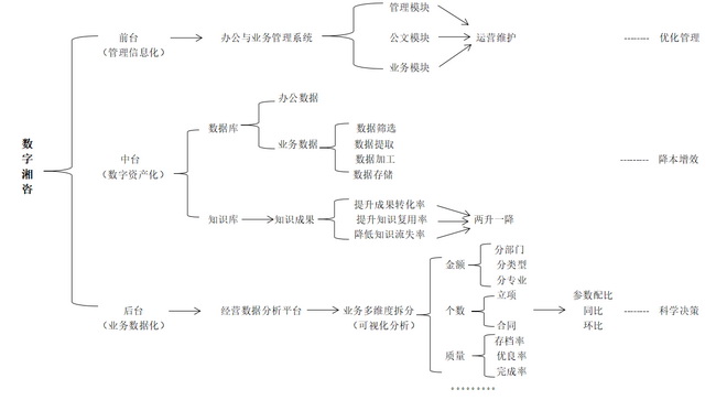 目前,公司整體信息化建設(shè)已初步形成以辦公和業(yè)務(wù)管理系統(tǒng)為前臺(tái)依托力、以知識(shí)庫(kù)平臺(tái)為中臺(tái)支撐力、以經(jīng)營(yíng)數(shù)據(jù)分析平臺(tái)為后臺(tái)驅(qū)動(dòng)力的“三駕馬車”并駕齊驅(qū)的數(shù)字化運(yùn)營(yíng)模式,下一步,公司將圍繞“管理信息化——數(shù)據(jù)資產(chǎn)化——業(yè)務(wù)數(shù)字化”轉(zhuǎn)型路線,不斷促進(jìn)公司優(yōu)化管理、降本增效和科學(xué)決策,在深入貫徹省委省政府“數(shù)字湖南、數(shù)字政府、數(shù)字社會(huì)”戰(zhàn)略進(jìn)程中,提升“數(shù)字湘咨”品牌影響力,助力“數(shù)字湖南”高質(zhì)量發(fā)展。
