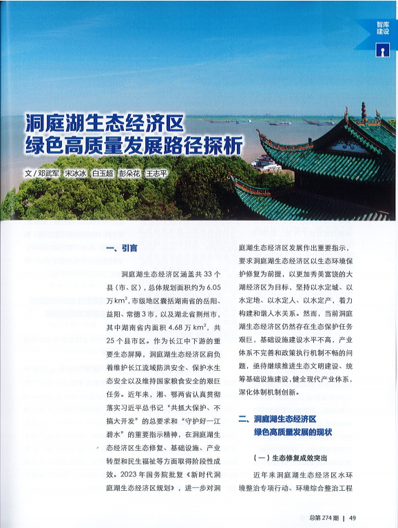 近日,由省咨詢公司生態(tài)規(guī)劃咨詢部撰寫的《洞庭湖生態(tài)經(jīng)濟(jì)區(qū)綠色高質(zhì)量發(fā)展路徑探析》一文被《中國(guó)工程咨詢》(中國(guó)工程咨詢協(xié)會(huì)主辦)2023年第3期刊用。