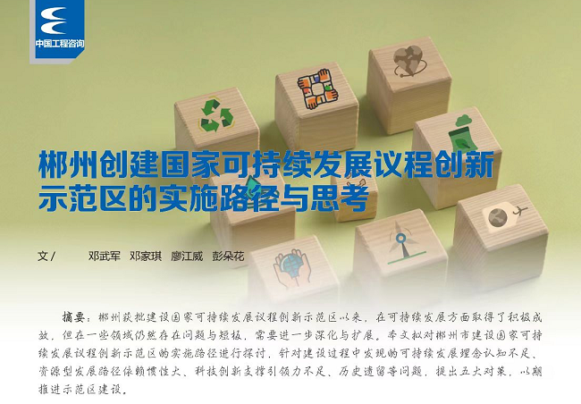 近日,由湘咨集團生態(tài)規(guī)劃咨詢事業(yè)部撰寫的《郴州創(chuàng)建國家可持續(xù)發(fā)展議程創(chuàng)新示范區(qū)的實施路徑與思考》一文刊發(fā)于《中國工程咨詢》2023年第8期,作者為該部門鄧武軍、鄧家琪、廖江威、彭朵花?!吨袊こ套稍儭冯s志創(chuàng)刊20年,是工程咨詢行業(yè)唯一全國發(fā)行的期刊。期刊主要宣傳黨和國家有關(guān)投資建設的方針、政策和法規(guī),介紹中國工程咨詢行業(yè)工作動態(tài)和發(fā)展面貌,溝通國內(nèi)外工程咨詢行業(yè)信息,報道工程咨詢業(yè)焦點人物、重要事件及典型案例,探討工程咨詢理論建設,傳播工程咨詢業(yè)務知識等。
