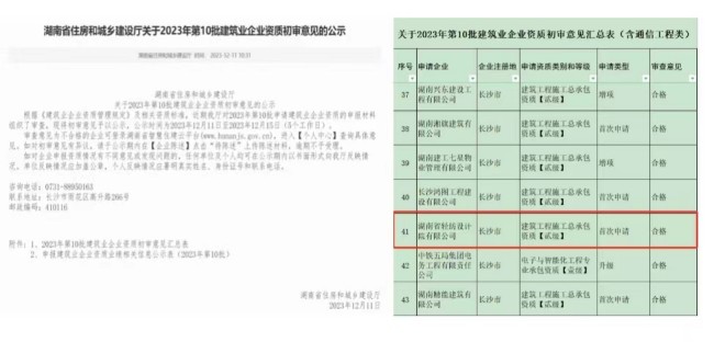 近期,湘咨集團(tuán)資質(zhì)升級(jí)工作再傳喜訊!集團(tuán)所屬省輕紡院建筑工程施工總承包貳級(jí)資質(zhì)順利公示、工程勘察專業(yè)類巖土工程(勘察)甲級(jí)資質(zhì)順利延續(xù);集團(tuán)所屬能源工程技術(shù)公司新獲批工程設(shè)計(jì)電力行業(yè)乙級(jí)資質(zhì),湘咨集團(tuán)整體資質(zhì)硬實(shí)力進(jìn)一步提升。
