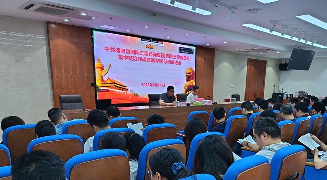 6月26日上午,湘咨集團(tuán)召開(kāi)集中整治違規(guī)吃喝專項(xiàng)行動(dòng)推進(jìn)會(huì)。集團(tuán)黨委副書記、董事、總經(jīng)理李云主持并講話,黨委委員、紀(jì)委書記鄧乾坤傳達(dá)了湖南能源集團(tuán)推進(jìn)會(huì)議精神和《關(guān)于開(kāi)展集中整治違規(guī)吃喝專項(xiàng)行動(dòng)的工作方案》、規(guī)范公務(wù)接待有關(guān)事項(xiàng)的通知精神。會(huì)議組織觀看了《鐵規(guī)矩 硬杠杠》警示教育片。